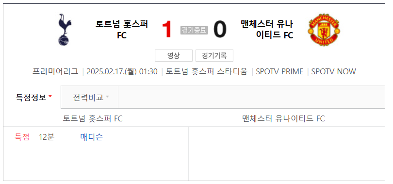 맨유는 이후 브루노 페르난데스를 앞세워 반격을 시도했지만, 토트넘의 탄탄한 수비에 막혀 득점하지 못했습니다.