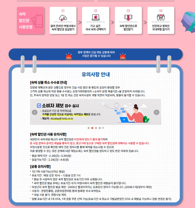 국내 여행을 계획 중이라면? 선착순 30만 장 숙박 할인권을 놓치지 마세요!