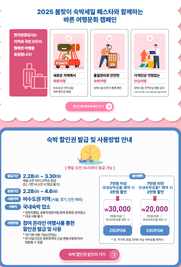 🌸 선착순 30만 장 숙박 할인권, 최대 3만 원 할인 혜택!