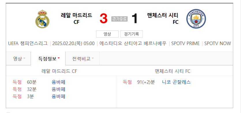 📢 레알 마드리드가 맨시티를 3-1로 격파!