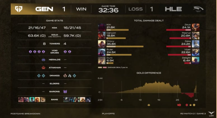 이번 경기에서는 젠지가 초반부터 우위를 점하며 한화생명의 공격적인 조합을 무력화하는 데 성공했고,